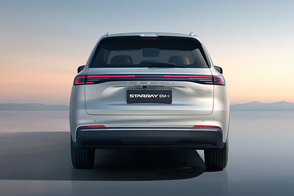 wróć do listy wersji modeluNowy Geely Starray Pro z roku modelowego 2025 z hybrydowym zespołem napędowym w wariancie EM-i 1,5 (262 KM) 1DHT. Przedstawiony model pojazdu to 5 drzwiowe auto z nadwoziem typu SUV, wyposażone w ładowany z gniazdka napęd hybrydowy typu plug-in (silnik benzynowy współpracujący z silnikiem elektrycznym) o łącznej mocy systemowej wynoszącej 262 KM oraz momencie obrotowym o wartości 262 Nm (emisja dwutlenku węgla na poziomie 54 g/km). Samochód wyposażony jest w automatyczną skrzynię biegów (DHT-1).