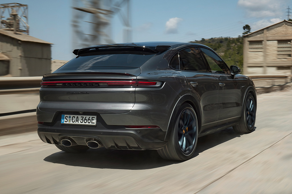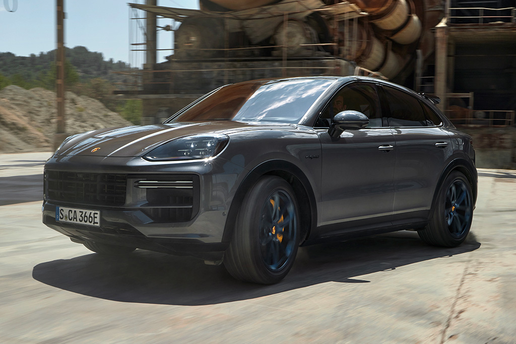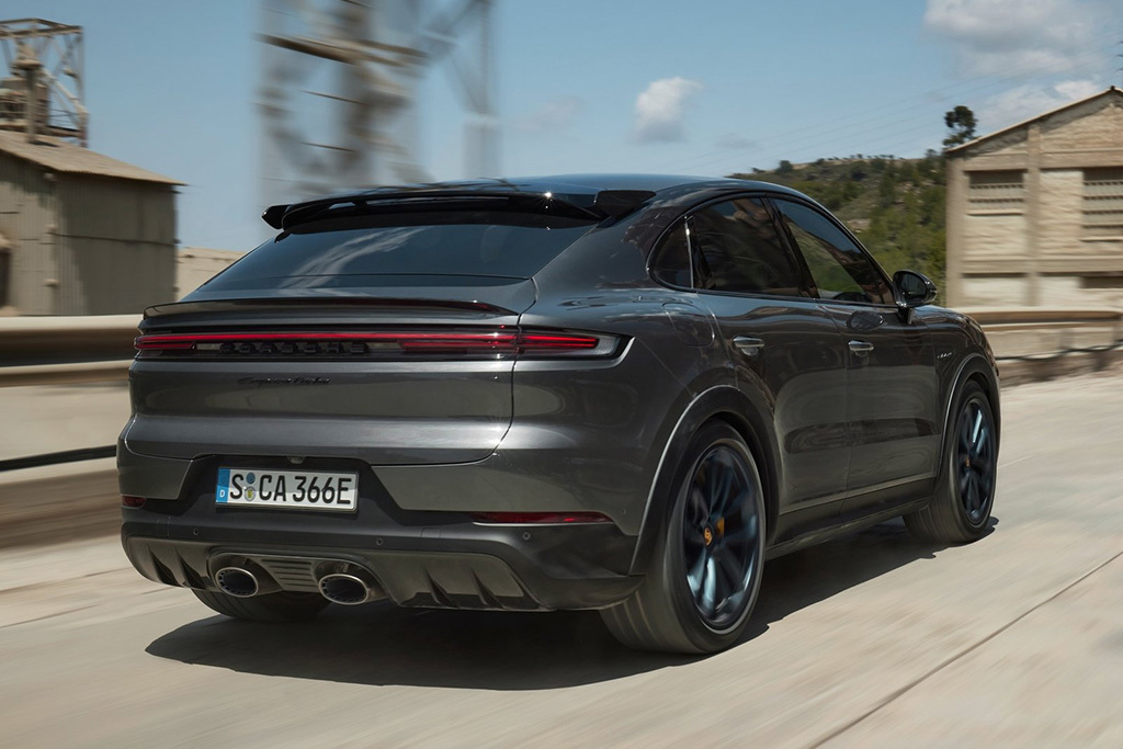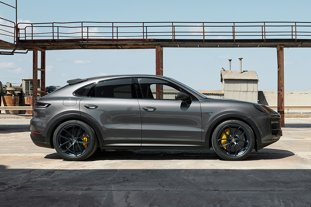 wróć do listy wersji modeluNowe Porsche Cayenne Coupe z roku modelowego 2025 z hybrydowym zespołem napędowym w wariancie Turbo E-Hybrid 4,0 (739 KM) A8 Tiptronic. Przedstawiony model pojazdu to 5 drzwiowe auto z nadwoziem typu suv coupe, wyposażone w ładowany z gniazdka napęd hybrydowy typu plug-in (silnik benzynowy współpracujący z silnikiem elektrycznym) o łącznej mocy systemowej wynoszącej 739 KM oraz momencie obrotowym o wartości 950 Nm przy 2400 obr/min (emisja dwutlenku węgla na poziomie 40 g/km). Samochód wyposażony jest w automatyczną skrzynię biegów.
