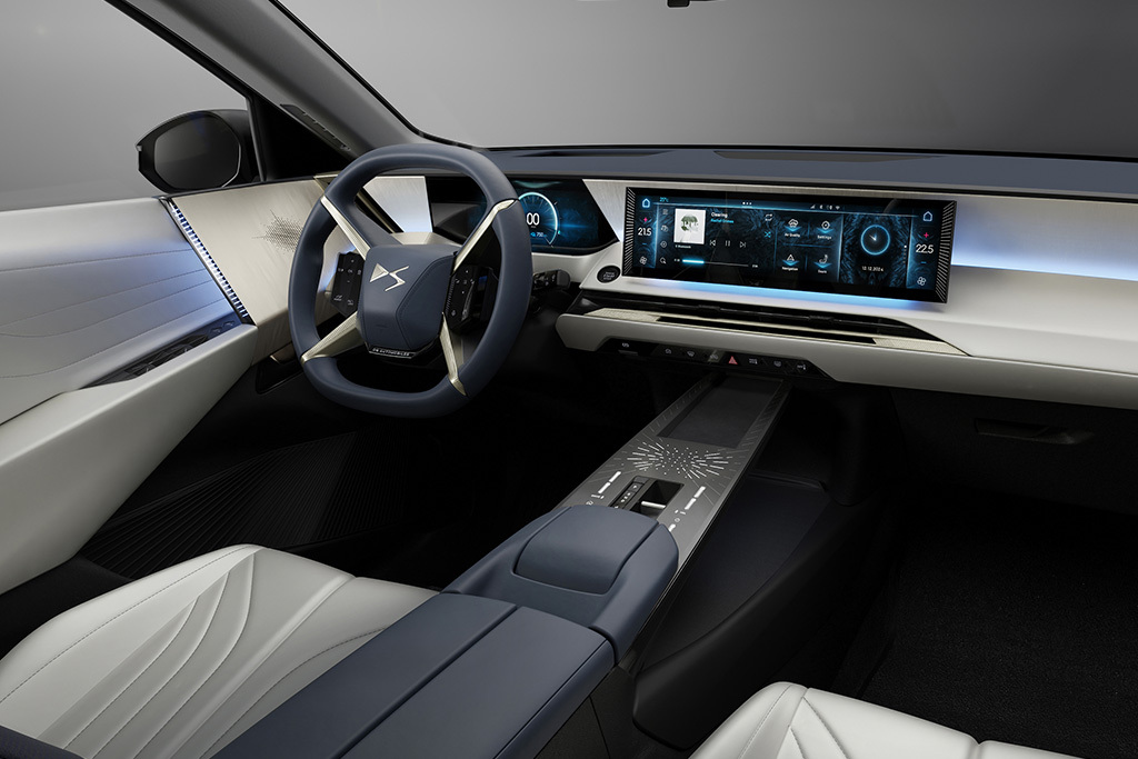 wróć do listy wersji modeluNowy DS No8 Etoile Long Range z roku modelowego 2025 z elektrycznym, bezemisyjnym zespołem napędowym w wariancie (375 KM | 97,1 kWh) AWD. Przedstawiony model pojazdu to 5 drzwiowe auto z nadwoziem typu SUV, wyposażone w silnik elektryczny dostarczający moc rzędu 375 KM oraz 509 Nm momentu obrotowego. Samochód wyposażony jest w automatyczną skrzynię biegów (jednobiegowa przekładnia redukcyjna).