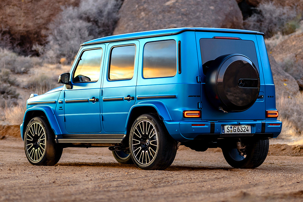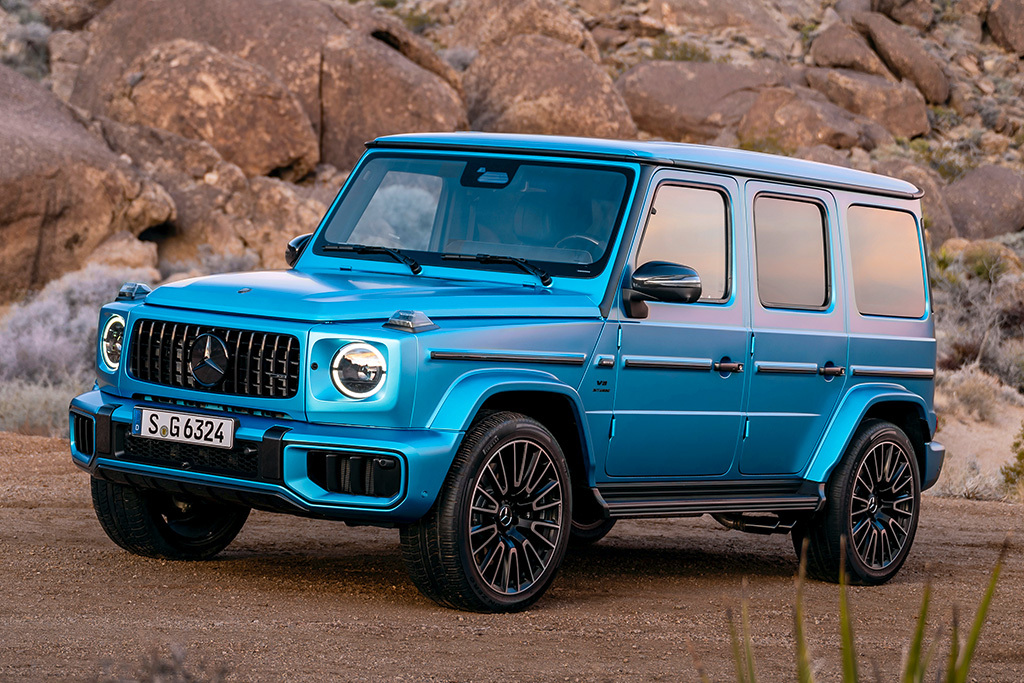 wróć do listy wersji modeluNowy Mercedes Klasy G z roku modelowego 2025 z hybrydowym zespołem napędowym w wariancie 63 AMG (605 KM) SpeedShift TCT 9G. Przedstawiony model pojazdu to 5 drzwiowe auto z nadwoziem typu SUV, wyposażone w silnik benzynowy wspomagany układem miękkiej hybrydy (mild hybrid) i dostarczający moc rzędu 605 KM oraz moment obrotowy o wartości 1050 Nm przy 2500 obr/min (emisja dwutlenku węgla na poziomie 336 g/km). Samochód wyposażony jest w automatyczną skrzynię biegów (SpeedShift TCT 9G).