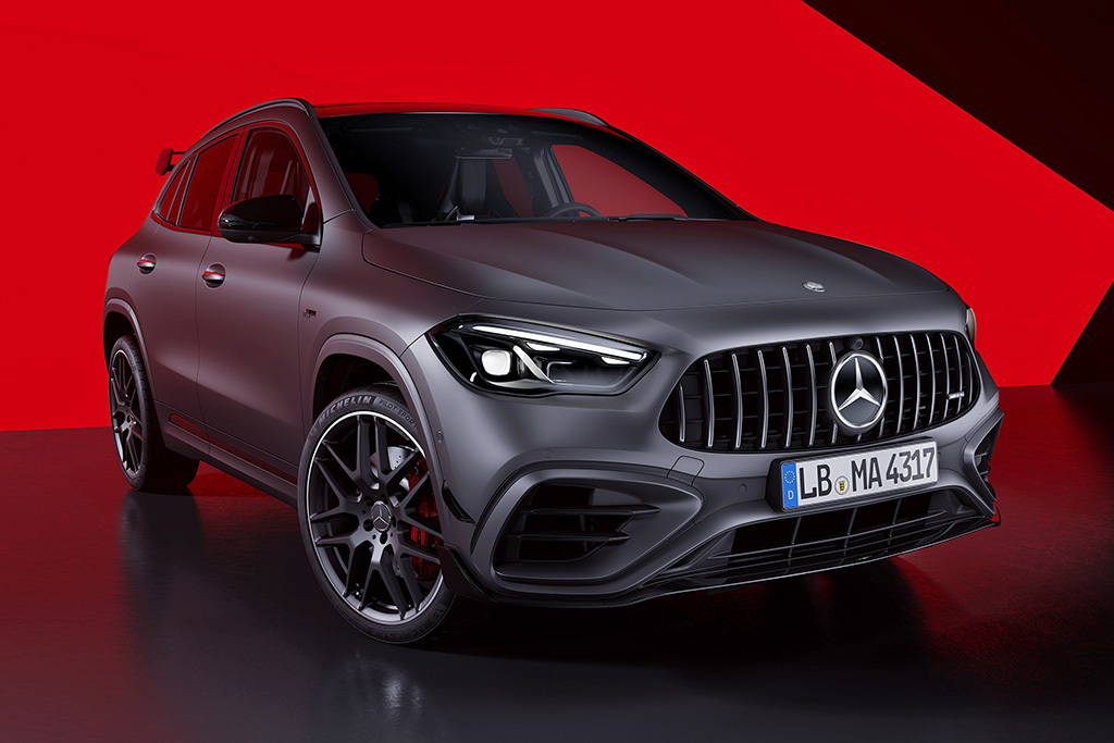 wróć do listy wersji modeluNowy Mercedes GLA z roku modelowego 2025 w wersji z jednostką napędową AMG 45 S 4Matic (421 KM) 8G-DCT. Przedstawiony model pojazdu to 5 drzwiowe auto z nadwoziem typu SUV, wyposażone w silnik benzynowy dostarczający moc rzędu 421 KM oraz moment obrotowy o wartości 500 Nm przy 5000 obr/min (emisja dwutlenku węgla na poziomie 216 g/km). Samochód wyposażony jest w dwusprzęgłową automatyczną skrzynię biegów.
