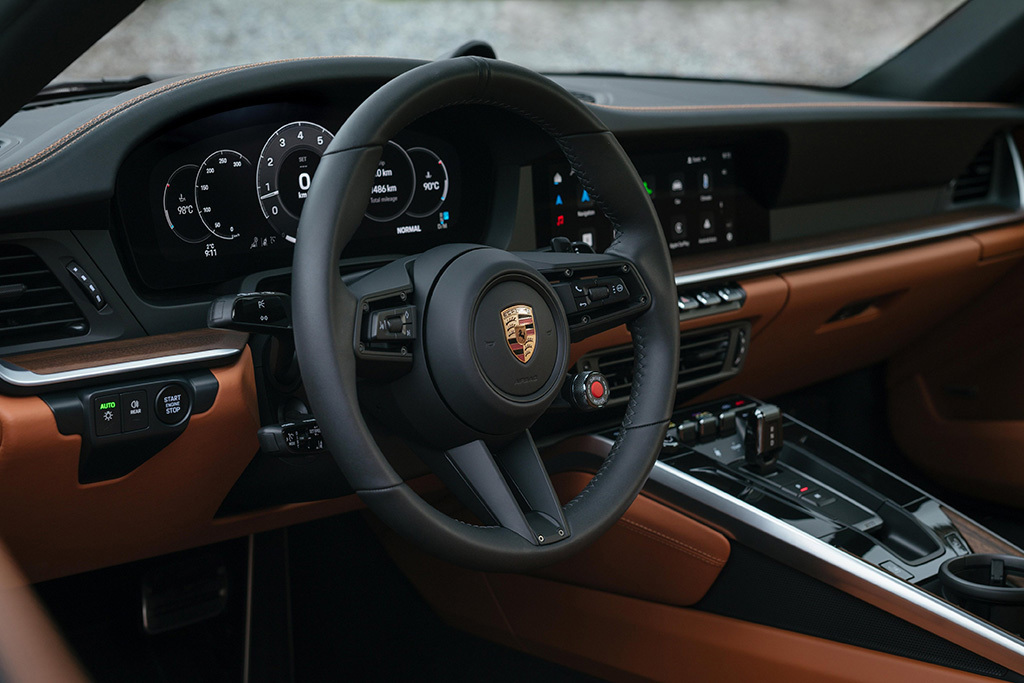 wróć do listy wersji modeluNowe Porsche 911 Carrera S Cabrio z roku modelowego 2025 w wersji z jednostką napędową 3,0 (480 KM) A8 PDK. Przedstawiony model pojazdu to 2 drzwiowe auto z nadwoziem typu cabrio, wyposażone w silnik benzynowy dostarczający moc rzędu 480 KM oraz moment obrotowy o wartości 530 Nm (emisja dwutlenku węgla na poziomie 238 g/km). Samochód wyposażony jest w dwusprzęgłową automatyczną skrzynię biegów.