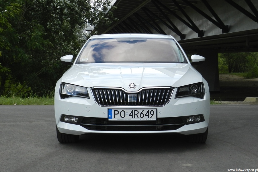 W przedniej części auta dominują – dużych rozmiarów krata wlotu powietrza z pionowymi poprzeczkami, kanciasty zderzak oraz ksenonowe reflektory przednie, wyposażone w diodowe (LED) światła jazdy dziennej o efektownym kształcie. Szerokie lampy, mocno zaznaczone poziome linie oraz bardzo długie drzwi tyłu nadwozia to elementy charakteryzujące tył testowanego pojazdu. Usportowiona sylwetka nowego Superba wyróżnia się dyskretnym i jednocześnie oryginalnym designem, dzięki czemu auto emanuje prestiżem i elegancją.