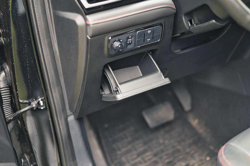 Przechodząc do wnętrza, od razu rzuca się w oczy przestronność kabiny. Zarówno kierowca, jak i pasażerowie z tyłu mogą liczyć na sporo miejsca, co rzadko zdarza się w pickupach z tym segmentem. Fotele są wygodne i dobrze wyprofilowane, a materiały użyte w tapicerce i wykończeniach sprawiają wrażenie trwałych i solidnych.