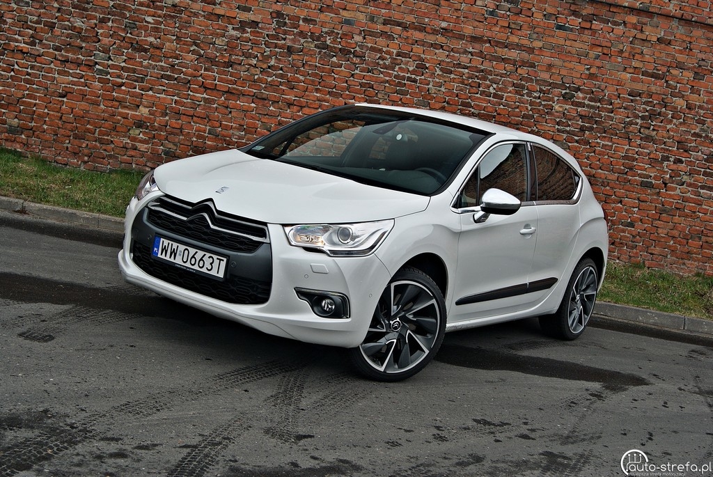 Choć mamy do czynienia z autem typu crossover, prowadzenie go należy do bardzo przyjemnych zajęć. Oczywiście, pojawiają się delikatne przechyły nadwozia, jednakże nie mają one większego wpływu na trakcję. Układ kierowniczy jest odpowiednio zestrojony. Pracuje z odpowiednim oporem, co wprowadza w nieco bardziej sportowy nastrój. Mimo iż DS4 posiada napęd na przednią oś, prowadzi się go „jak po sznurku” i trudno wyprowadzić go z równowagi. Na świetną przyczepność mają dobry wpływ 19-calowe felgi połączone z oponami o skromnym profilu. To niestety negatywnie odbija się na komforcie podróży. Polskie dziury dają się we znaki bardzo często, a ich mnogość nie wróży niczego dobrego. Według mnie skutecznym kompromisem są „siedemnastki”, które poprawiłyby jakość podróży bez utraty dobrej trakcji. Trzeba jednak pochwalić Citroena za świetne wyciszenie wnętrza. Nawet przy autostradowych prędkościach (i nieco wyższych…) w kabinie panuje spokój pozwalający na bezproblemową komunikację. Natomiast podczas miejskich manewrów przydają się czujniki parkowania. Ze względu na niewielką, tylną szybę (zintegrowaną z wycieraczką wielkości długopisu) widoczność jest przeciętna. Elementem poprawiającym bezpieczeństwo jest system informujący (za pomocą pomarańczowych lampek umieszczonych w bocznych lusterkach) o pojazdach znajdujących się w martwym polu. Jest to naprawdę pomocne rozwiązanie, które powinno być obowiązkowe w każdym samochodzie. A przynajmniej w tych, które posiadają lusterka wielkości myszki od komputera (czyt. sportowych).