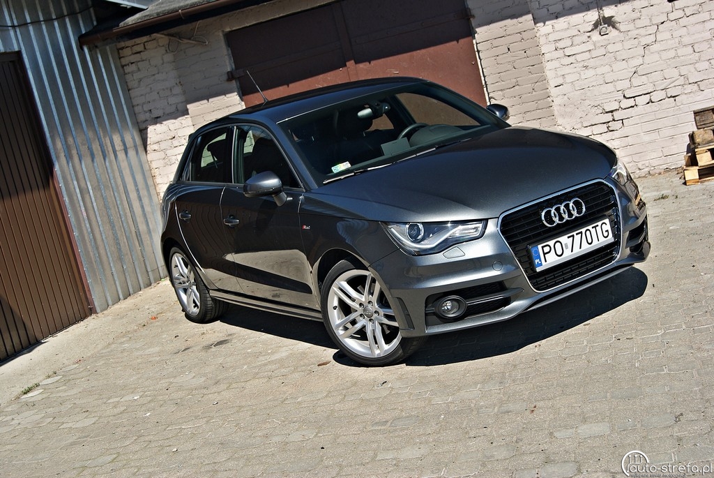 Przód auta nawiązuje do większych braci. Charakterystyczny grill otoczony chromowaną listwą oraz zadziornie spoglądające reflektory dodają małemu Audi pewności siebie. Sportback w porównaniu do wersji trzydrzwiowej ma przesunięty słupek B o 230 mm do przodu i wyższe nadwozie o 6 mm. Te zmiany nie wpływają negatywnie na urodę auta. Sylwetka prezentuje się bardzo dynamicznie, a pakiet S-Line sprawia, że „A-Jedynka” wygląda jak mały kulturysta. Dodam, że nieco zgarbiony. Powodem tego jest mocno pochylona tylna szyba. Patrząc w dół, można dostrzec, że lampy zostały zintegrowane z klapą bagażnika, by nie zmniejszać szerokości otworu załadunkowego – akcent znany z potężnego Q7. W oczy rzucają się także 17-calowe felgi, dzięki którym auto wydaje się nieco większe.