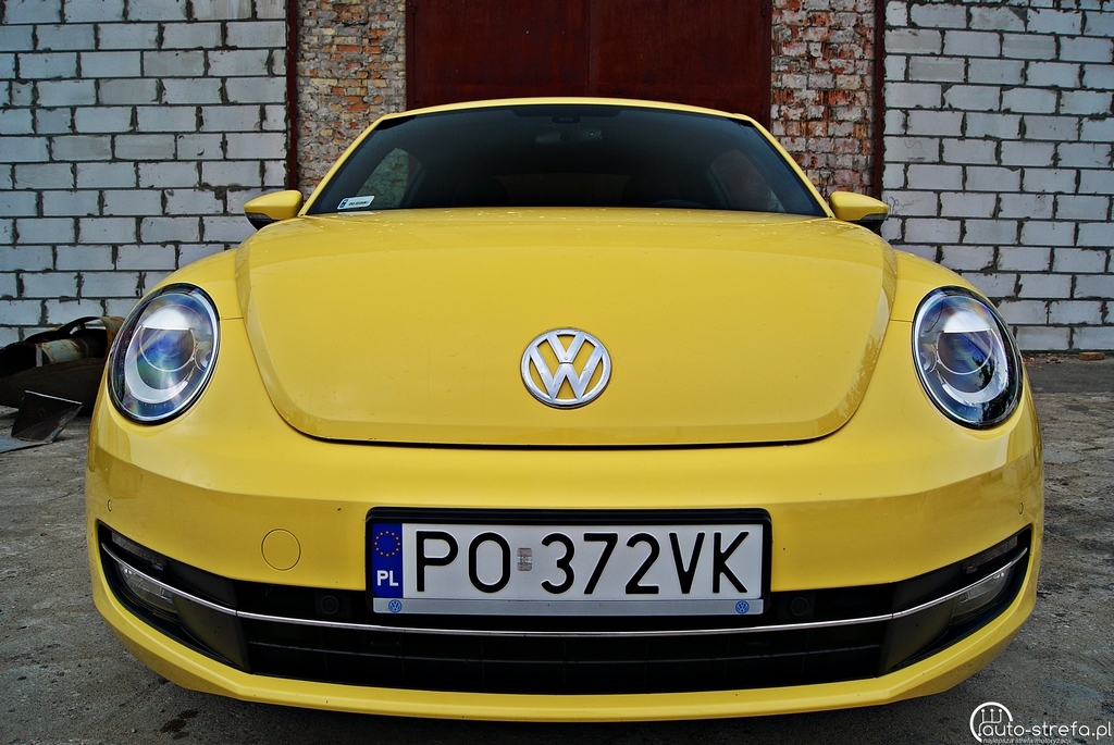 Testowane autko napędzał niewielki benzynowy silniczek TSI o pojemności 1,4 l. Oczywiście został on tak skonstruowany, by maksymalnie wykorzystać jego możliwości. Tym samym Beetle może pochwalić się mocą wynoszącą 160 KM. Moc ta dzięki świetnie zestopniowanej, 6-biegowej skrzyni może zostać wykorzystana w pełni. W tak małym aucie naprawdę się to odczuwa. Pierwszą setkę zobaczymy na liczniku już po 8 sekundach (8,3 dla wnikliwych), prędkość maksymalną ograniczono zaś do 208 km/h (sam licznik, nie wiedzieć czemu, wyskalowany jest do 260 km/h). Miło zaskakuje spalanie. Podczas jazdy w mieście, w zależności od warunków autko spala od 7,5 do 9,3 l na 100 km. W trasie wynik na poziomie 5 litrów jest jak najbardziej realny, bez konieczności większych wyrzeczeń. Sama jazda Beetlem to również przyjemność. Samochód trafiając w sam środek granicy pomiędzy komfortem, a sportowymi właściwościami jest wręcz idealnie zestrojony. Zawieszenie znakomicie tłumi nierówności, a przy tym jest na tyle twarde, że w ostrych i szybkich zakrętach auto nie podpiera się lusterkami.