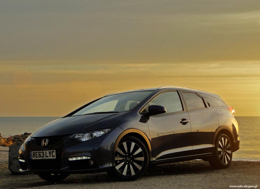 Kombi powraca do Civica po 13-letniej przerwie. Ostatni raz ten najpopularniejszy w historii Hondy kompakt z powiększoną przestrzenią bagażową oferowany był w 2000 roku. Dziewiąta generacja modelu charakteryzuje się śmiałą, awangardową wręcz stylistyką zewnętrzną. Przy okazji wprowadzenia na rynek nowego kombi producent odświeżył również wygląd zewnętrzny mniejszego hatchbacka, na którym bazuje wersja Tourer. Znajdziemy więc tutaj charakterystyczny front z pięciokątnymi reflektorami i lakierowaną plastikową osłoną oraz poziome listwy świateł LED. W profilu pozostawiono charakterystyczne czarne osłony nadkoli i ukryte w słupku C klamki tylnych drzwi, powierzchnia okien w tylnych drzwiach została podniesiona o 17 mm (w stosunku do hatchbacka), a dach podwyższono o 10 mm. Wydłużona tylna część nadwozia zyskała dodatkowe smukłe szyby boczne, spoiler dachowy, dwa spoilery pionowe oraz zupełnie nowe lampy tylne połączone typową dla tego modelu poziomą, czerwoną listwą. Całość prezentuje się bardzo atrakcyjnie i jest obecnie jedną z ciekawszych propozycji pod względem designu zewnętrznego w kompaktowej klasie kombi.