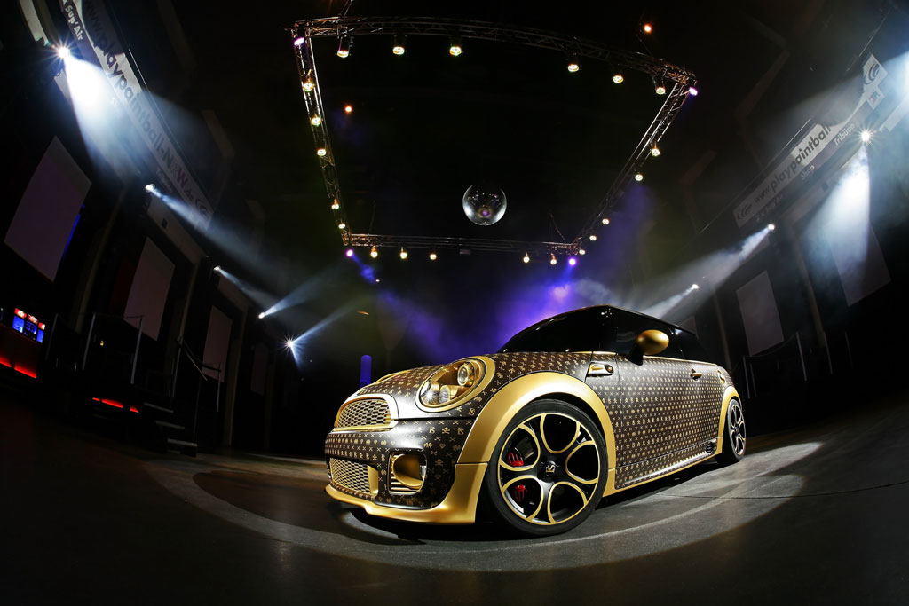 Niemiecki tuner CoverEFX postanowił podjeść kompleksowo do modelu MINI Cooper Works i zmodyfikował zarówno jego wygląd, jak i szereg komponentów kryjących się pod nadwoziem. MINI pokryto warstwą specjalnej folii przypominającej czarną skórę, z metalicznymi, złotymi wzorami, które zostały naklejone pojedynczo i ręcznie. Syzyfowa praca, biorąc pod uwagę ich rozmiar i ilość, którą należałoby chyba liczyć w tysiącach. Pozostałe detale wykończeniowe nadwozia również polakierowano na złoty kolor.