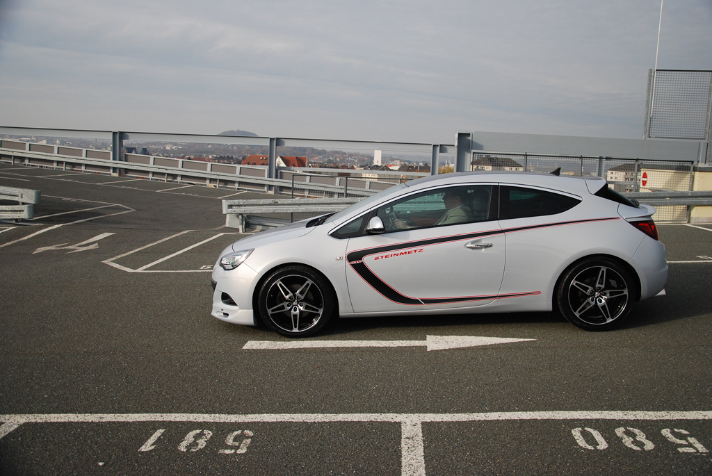 Specjalizujący się w modyfikacjach modeli Opla tuner – Steinmetz przygotował specjalną wersję nowej Astry GTC i ma zamiar pokazać ją premierowo podczas Essen Motor Show. Na przednim zderzaku zamontowano spojler stworzony przez Steinmetz’a poprawiający docisk. Do tego dodano czarną atrapę kratki chłodnicy, spojler tylny, ozdobne pasy na bokach samochodu w kolorze srebrnym i antracytowym, nakładki na klamki drzwiowe i obudowy lusterek bocznych ze stali nierdzewnej oraz sportowy tłumik wydający odpowiednio potężny dźwięk. Środek ciężkości Astry GTC obniżono o ok. 30 mm. Pojazd porusza się na oponach w rozmiarze 245/40-R19 marki Continental lub Michelin zamontowanych na 19-calowych felgach Steinmetz ST10.