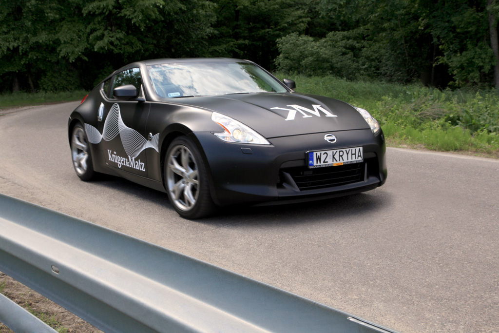Priorytetem Krüger&Matz jest wyjątkowa stylistyka oraz doskonałe brzmienie. Wszystkie urządzenia mają szczególny, niepowtarzalny design oraz doskonałą jakość, by każdy kto ich używa czuł się wyjątkowo. W te założenia idealnie wpisuje się Nissan 370Z. Czarne, dwudrzwiowe sportowe auto z napędem na tylne koła i silnikiem 3,7l o mocy 331 KM, z charakterystycznym dla Krüger&Matz znakiem fali akustycznej zostało wyposażone w najbardziej zaawansowane produkty car audio z oferty.
