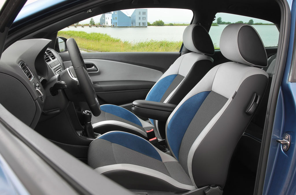 Wizualnie Volkswagena Polo BlueGT wyróżniają nowe, 17-calowe obręcze z lekkich stopów, spojler dachowy, zmodyfikowane zderzaki (z dyfuzorem przy tylnym zderzaku), wyraziste progi boczne i zmniejszony o 15 mm prześwit. We wnętrzu znajdziemy wielofunkcyjne wyświetlacze i sportowe fotele z przodu. Oprócz tego nowy Volkswagen posiada: system ESP, poduszki przednie oraz chroniące okolice głowy i klatki piersiowej, elektrohydrauliczny układ kierowniczy i system utrzymywania przez pojazd stałej prędkości podróżnej.