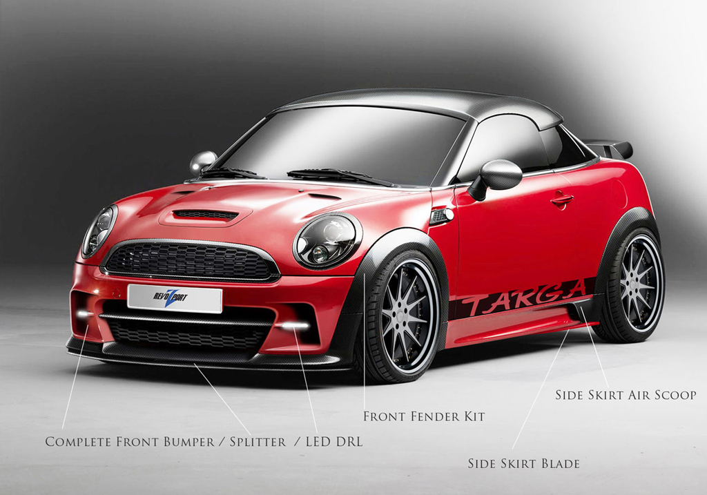 Projektem zajął się człowiek z brytyjskiej placówki Revozport i zamienił MINI Coupe w ekstremalne, sportowe coupe. Pojazd jest o 30 kg lżejszy, za to jego moc wzrosła ze 181 do 250 KM. By tego dokonać Revozport sprzymierzyło się z zespołem inżynierów z TARGA Racing, którzy odpowiadali za produkcję zestawów tuningowych.