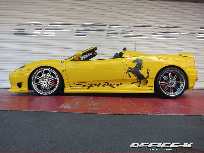 Japończycy już nie raz udowodnili, że potrafią robić tuning w dobrym guście i zaskoczyć ciekawymi, nieszablonowymi propozycjami. Wystarczy przypomnieć tunera Wald International i jego dzieła z serii Black Bison, np.: Lexusa CT 200h, Infiniti G37, czy Rolls-Royce’a Phantom Drophead Coupe. O ile jednak Wald International preferuje raczej rodzime marki, o tyle inny rezydujący w Kraju Kwitnącej Wiśni tuner – Office-K woli zajmować się modelami włoskimi. I chyba woli rozwiązania rzucające się w oczy od tych naprawdę eleganckich. Ostatnio pochwalił się dość ekscentrycznym programem modyfikacji dla relatywnie starego modelu Ferrari 360 Spider, który produkowany był w latach 2001 – 2005. Panowie z Office-K przygotowali dla niego specjalny „body kit”