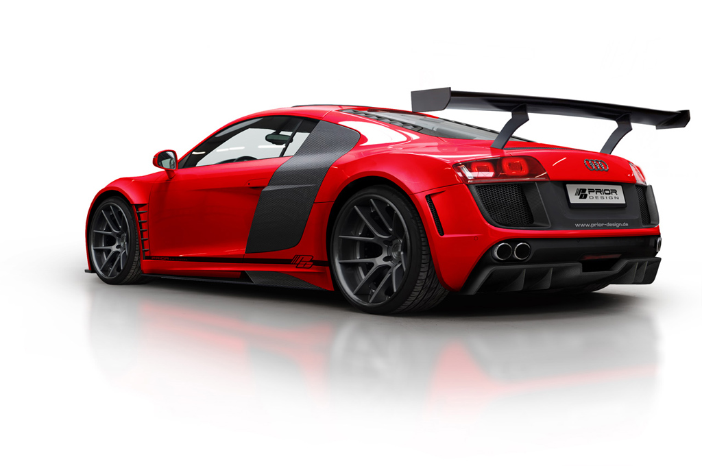 Nadanie Audi R8 nowego stylu z pewnością nie jest łatwym zadaniem, jednak tuningowy specjalista Prior Design podjął się go i zaprezentował właśnie imponujące rezultaty swej pracy. Tuner zmienił standardowe Audi R8 w brutalny pojazd w stylu wyścigowym o nazwie PD-GT850, który z pewnością prezentowałby się świetnie na najbardziej znanych torach, choćby na Nurnburgring. Przednia część nadwozia została kompletnie przeprojektowana. Zainstalowano poszerzony przedni fartuch ze zintegrowanym spojlerem z włókna węglowego. Dodatkowo zamontowano nowe pokrywy wlotów powietrza z rozpórkami z włókna węglowego. Maskę silnika zaopatrzono w wyloty powietrza z czterema lamelami. Zestaw nowych, przednich błotników optycznie poszerza nadwozie.