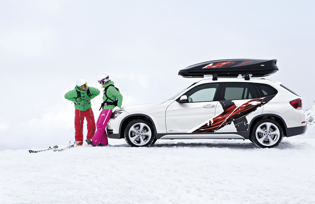 BMW X1 Edition Powder Ride będzie można zamówić w kolorze czarnym, białym, pomarańczowym, szarym lub srebrnym i ozdobić specjalnymi naklejkami nawiązującymi do motywów z BMW K2 Powder Ride Concept.