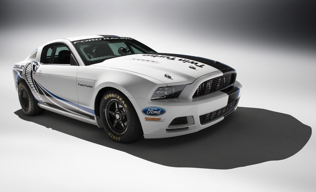 Koncepcyjny Ford Racing Mustang Cobra Jet właśnie debiutuje na targach SEMA Show w Las Vegas udowadniając, że pojemność silnika to nie jedyny czynnik wpływający na moc pojazdu. Zespół Ford Racing wyposażył fabrycznego “drag racera” w turbodoładowany silnik, w którym wykorzystano tę samą technologię, jakiej używa się w ulicznych modelach Forda z silnikami EcoBoost.