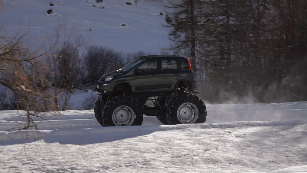 Tyle scenariusz, wróćmy jednak do prototypu przygotowanego specjalnie na potrzeby filmu reklamowego. Monster Truck to połączenie Pandy 4×4, panelu podłogowego Jeep CJ7 4200 oraz olbrzymich kół od traktora, na których zamontowano opony „High Speed” o średnicy 150 cm i szerokości 50 cm. Końcowy rezultat to pojazd o wysokości 390 cm, długości 380 cm i szerokości 250 cm. Budowa prototypu zajęła zespołowi Fiata około dwóch tygodni, a największym wyzwaniem okazało się podłączenie układu sterowniczego, przekładni i układu hamulcowego.