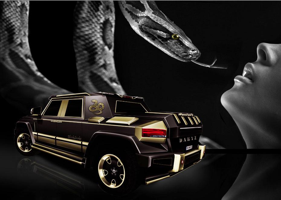 Łotewski tuner i producent opancerzonych samochodów: Dartz poinformował, że zamierza wprowadzić na rynek chiński nowy, specjalny model o nazwie Black Snake. Ma to być pierwszy nieopancerzony pojazd z plakietką Dartz. Choć sprzedawany będzie w Państwie Środka, to naszym zdaniem jest uosobieniem marzeń rosyjskich nowobogackich. Black Snake ma wszystko, a nawet więcej. Określenie jego stylu mianem „na bogato” byłoby wręcz niedopowiedzeniem.
