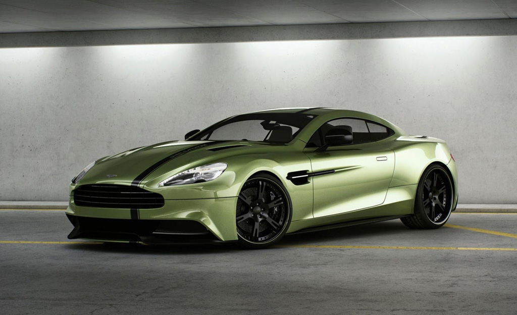 Oczywiście pierwszą zmianą, jaką do fabrycznego Vanquisha wprowadzili panowie z Wheelsandmore była wymiana obręczy. Tuner zaproponował kilka różnych wykończeń, w tym 20- i 21-calowe z lekkich stopów oraz modele wykończone włóknem węglowym. Montuje się na nich ogumienie Continental Sport Contact 5P. Nadwozie pokryto lakierem w oryginalny odcieniu jasnej, metalicznej zieleni połączonej z ozdobnym, czarnym pasem biegnącym wzdłuż auta – przez maskę silnika, wzdłuż dachu po pokrywę bagażnika.