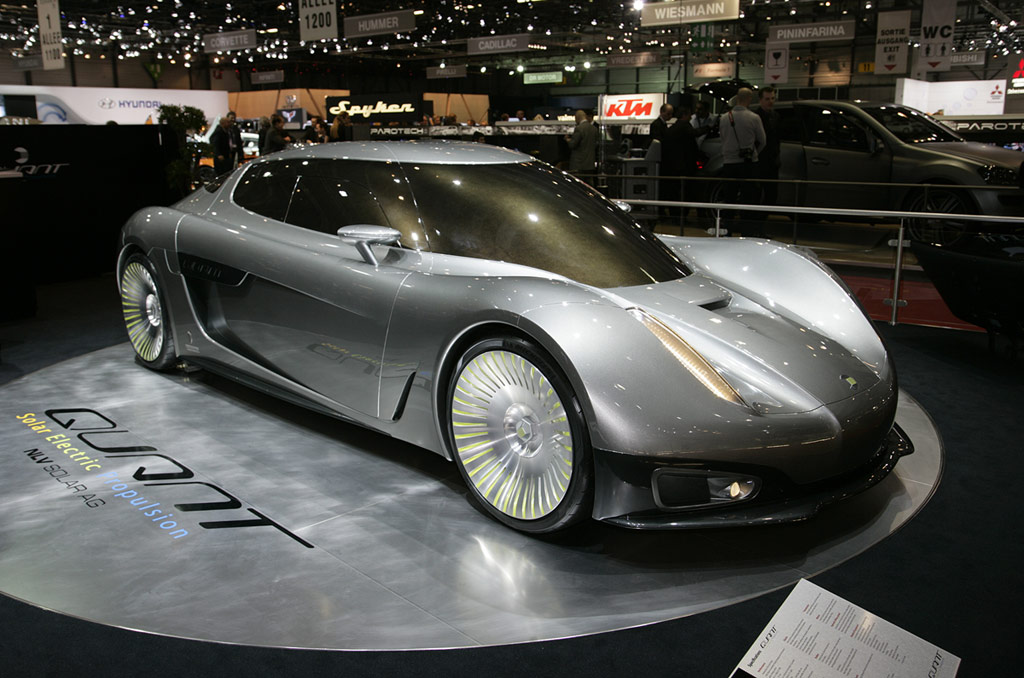 Koenigsegg Quant to ciekawa, czteroosobowa limuzyna-prototyp korzystająca z energii słonecznej. Jej nadwozie pokryto bateriami słonecznymi w formie cienkiego, niemal niewidocznego filmu. £adują one akumulatory FAES w około 20 min. Kolejne doładowania nie mają wpływać negatywnie na trwałość baterii. Oprócz tego pojazd ma dwa generatory odzyskujące enrgię podczas hamowania. Dwa silniki elektryczne umieszczono przy tylnych kołach, odznaczają się łączną mocą 512 KM (0-100 km/h w nieco ponad 5 sekund, prędkość maksymalna: 274 km/h, zasięg baterii: 500 km). We wętrzu luksusowe wyposażenie, jak na Koenigsegg przystało.