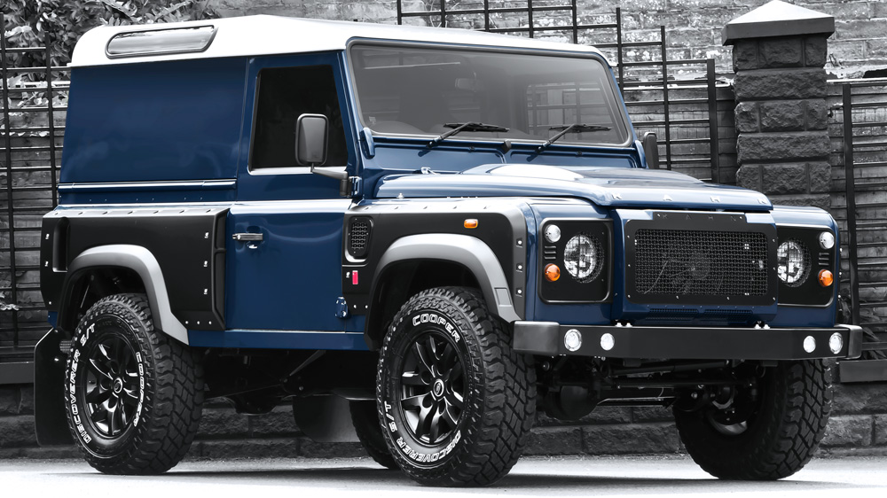 Defender o niebiesko-białym nadwoziu został spersonalizowany za pomocą następujących komponentów: poszerzonych błotników w przedniej i tylnej części ze integrowanymi otworami wentylacyjnymi, nowego zderzaka przedniego, maski silnika z otworami wentylacyjnymi przykrytymi siatką ze stali szlachetnej, świateł przeciwmgielnych, nowych osłon reflektorów, nowej atrapy chłodnicy z siatką ze stali szlachetnej, 16-calowych obręczy z lekkich stopów 1948 Defend w kolorze satynowej czerni, na których zamontowano opony w rozmiarze 235x85x16, aluminiowej osłony miski olejowej, nowych chlapaczy, nowej osłony na końcówki rur wydechowych oraz nowej pokrywy koła zapasowego. Wymieniony został także układ wydechowy.