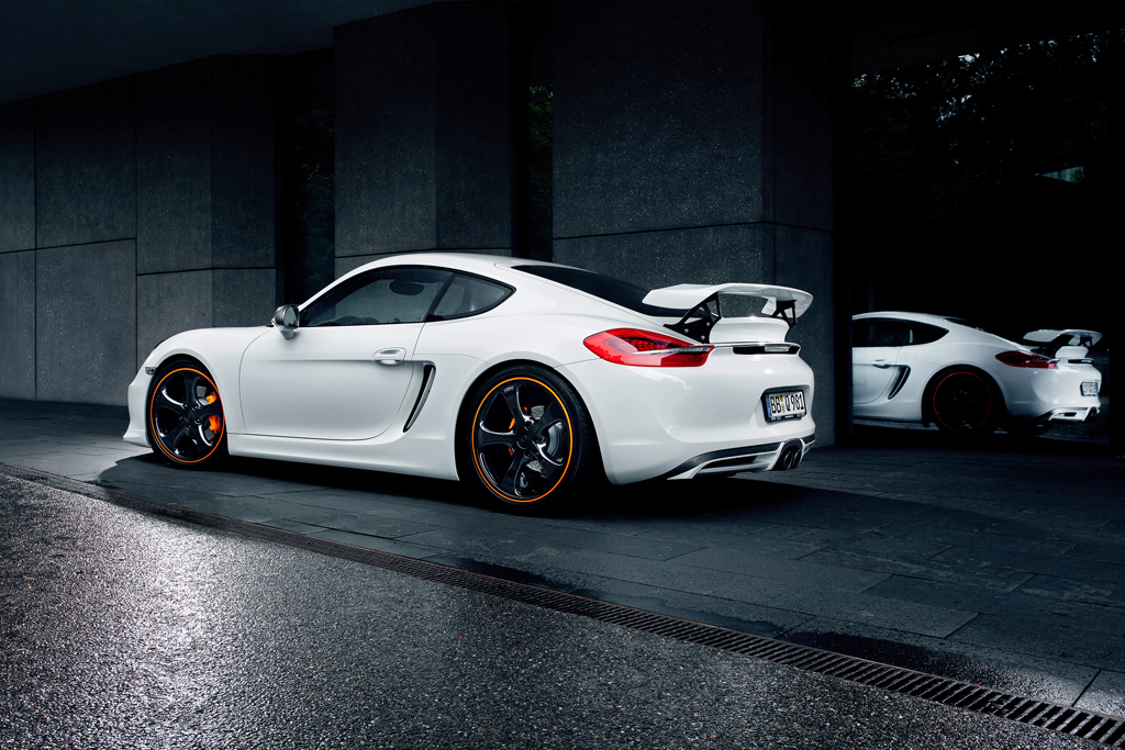 Nowy spojler uzupełnia zestaw komponentów aerodynamicznych Techartu dla Porsche Cayman, wykonano go z wysokiej jakości tworzyw PU-RIM. Kierowca może regulować kąt ustawienia tylnego skrzydła (dostępne są dwa ustawienia). W połączeniu ze spojlerem przednim Techartu, spojler tylny zmienia charakterystykę Caymana na bardziej sportową. Indywidualnego stylu modelowi nadaje także nowy dyfuzor tylny z umieszczonymi centralnie, sportowymi końcówkami rur wydechowych. W przedniej części nadwozia tuner zastosował nowe obudowy lusterek bocznych. Poza tym Cayman według Techartu ma specjalne „płetwy” zamontowane w bocznych otworach wentylacyjnych przy tylnych nadkolach. Całość uzupełniają nowe, 21-calowe, 5-ramienne obręcze z lekkich stopów.