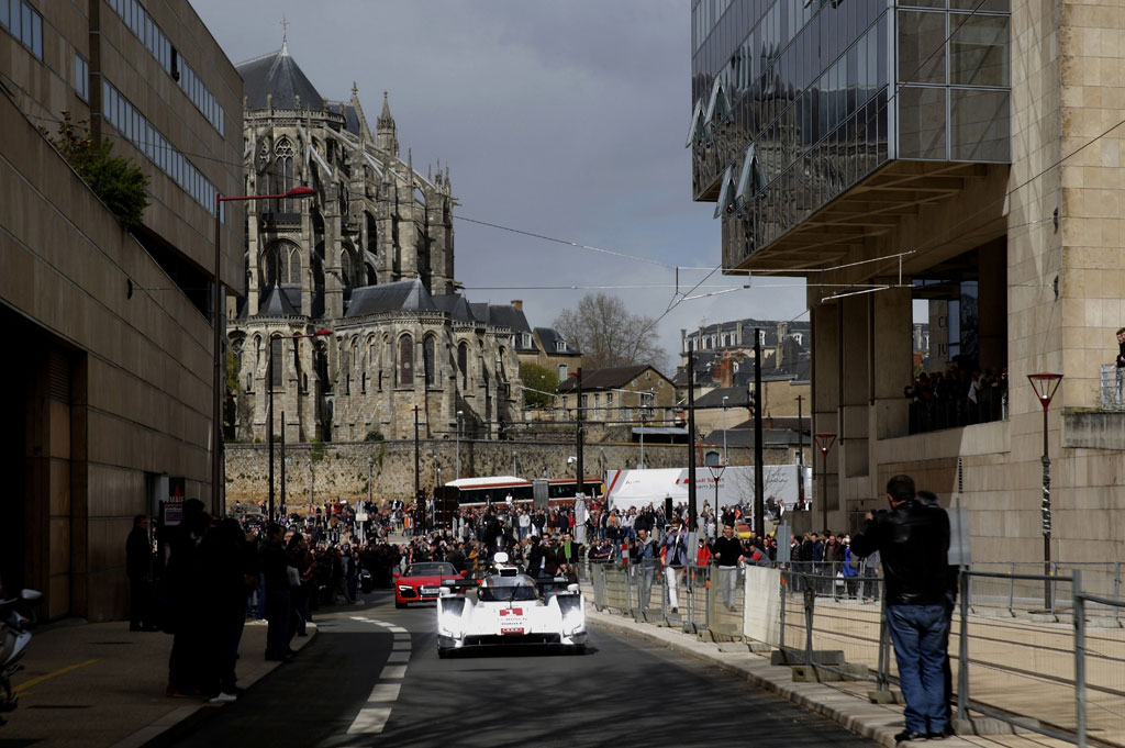 W towarzystwie kamer telewizyjnych i fotografów, co zapewniło transmisję na żywo w Internecie, nowy wyścigowy bolid LMP1 marki Audi pokonał około dziesięciokilometrową trasę wiodącą przez śródmieście, zrobił rundę na Circuit Bugatti i przy aplauzie dziennikarzy i gości z całego świata podjechał przed nowoczesne Welcome Center przy torze wyścigowym.