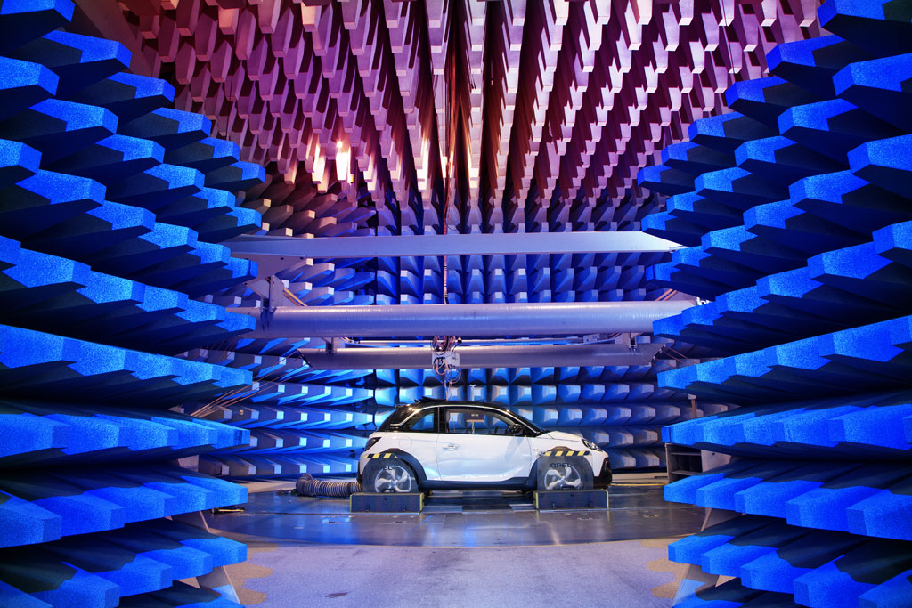 Oczywiście wszystkie te funkcje muszą działać perfekcyjnie przez cały okres eksploatacji pojazdu. Dlatego również ADAM ROCKS — jak każdy inny model Opla — musi przejść drobiazgowe testy w Centrum EMC w Rüsselsheim.