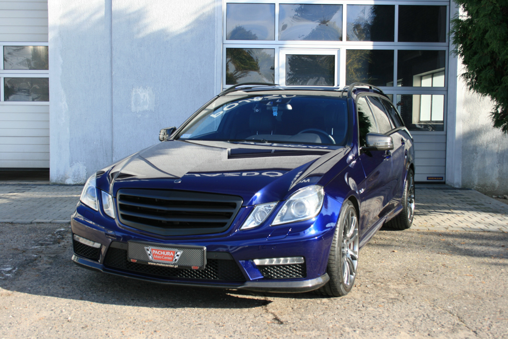 Kolejny projekt polskiego tunera – Pachura Motor Center to mocarne kombi Mercedes E63 AMG, w którym pod maską zagościł zestaw kompresora. Auto wcześniej zostało poddane tuningowi firmy Brabus obejmującemu układ wydechowy cat-back i aluminiowe felgi. Polacy skupili się na potężnym silniku V8 oraz układzie napędowym.
