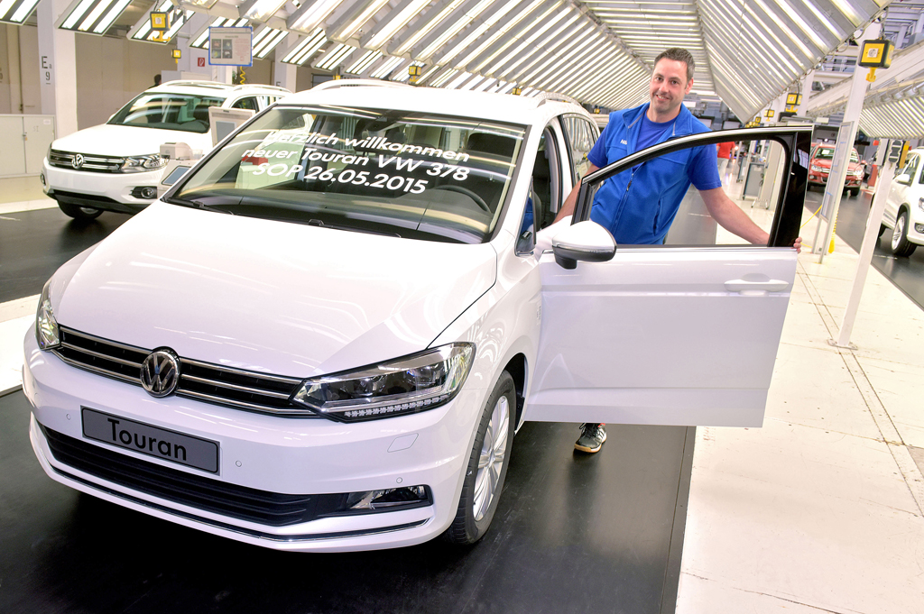 Z linii montażowej zakładów Volkswagena w Wolfsburgu zjechał pierwszy egzemplarz nowego Tourana. Samochód w kolorze białym perłowym i w wersji wyposażenia Highline, ma pod maską 1,4-litrowy benzynowy silnik TSI osiągający moc 110 kW (150 KM). Najpopularniejszy rodzinny van w Niemczech został opracowany na nowo, dzięki czemu jego wnętrze jest obszerniejsze (rozstaw osi zwiększył się o 11 cm), a nowe jednostki napędowe oszczędniejsze nawet o 19%. Nowego Tourana można także wyposażyć w najnowszej generacji systemy asystujące kierowcy.