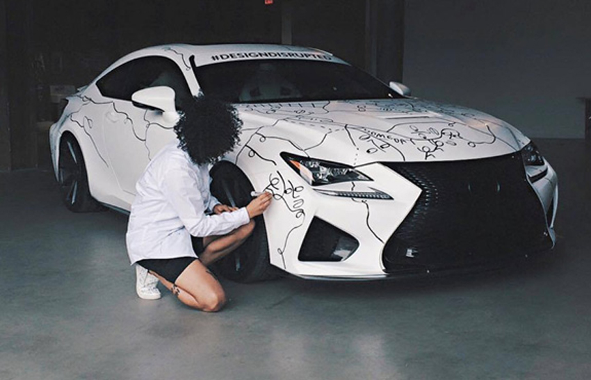 Lexus zaprosił Shantell do współpracy, udostępniając jej w charakterze płótna nieskazitelnie białego Lexusa RC F. Rysunki na karoserii nie budzą zwykle entuzjazmu właściciela, jednak w tym przypadku trzeba przyznać, że efekt robi naprawdę ogromne wrażenie – skomplikowane, wieloznaczne linie, którymi artystka pokryła sportowe coupe w wyjątkowy sposób odzwierciedlają kreatywną energię otaczającą samochód.