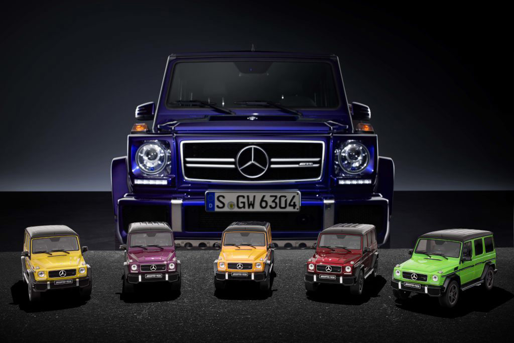 W ramach opcjonalnego pakietu kolorów Mercedes-AMG G 63 jest oferowany w pięciu ekstrawaganckich odcieniach lakieru do wyboru. Teraz te „szalone kolory” są dostępne również dla miłośników i kolekcjonerów miniaturek. Mercedes-Benz Accessories GmbH wprowadza do sprzedaży Gelendę w skali 1:18 w pięciu efektownych barwach: solarbeam, sunsetbeam, aliengreen, tomatored oraz galacticbeam.
