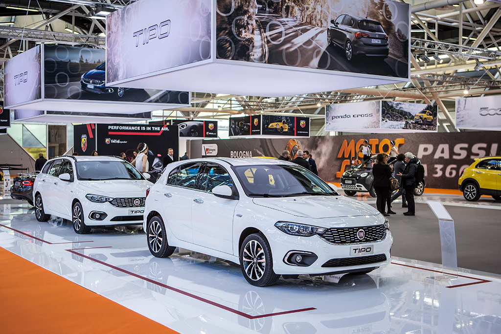 Na stoisku Fiata w Bolonii można było podziwiać wersje 5-drzwiową i kombi Tipo pokryte białym lakierem Bianco Gelato. Łączą je wspólne wartości, ale każda z nich charakteryzuje się własnym stylem, tak zróżnicowanym, jak różne są ich grupy docelowe. Rodzina Tipo powstała w oparciu o koncepcję „skills-no frills”, łącząc cechy typowe dla idei marki Fiat w całej jej historii/ Chodzi o funkcjonalność, prostotę i charakter oraz dobrą relację produktu do ceny.
