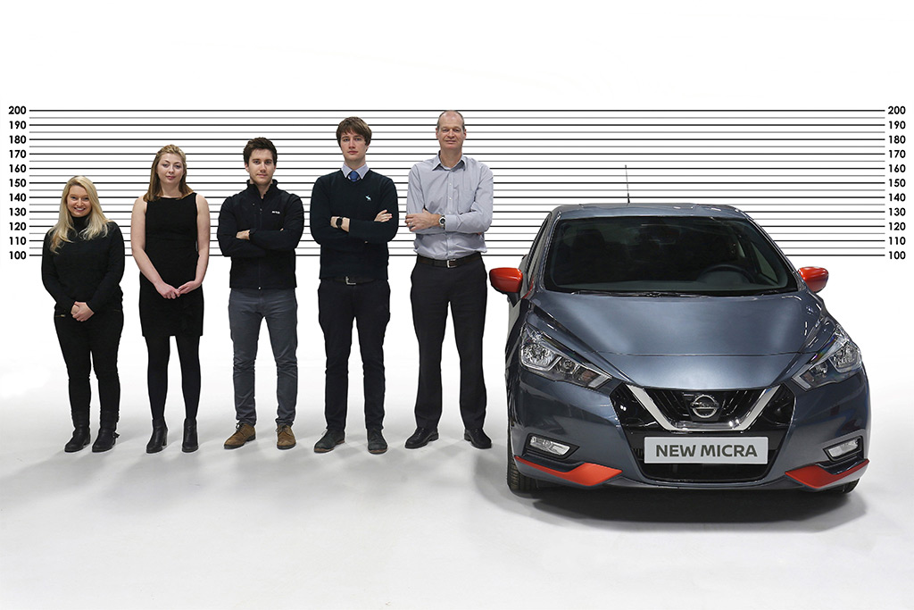 Rozpiętość wzrostu pracowników, którzy pomagali przy projektowaniu przestronnego wnętrza Nissana Micra wynosiła od 152 do ponad 200 centymetrów.