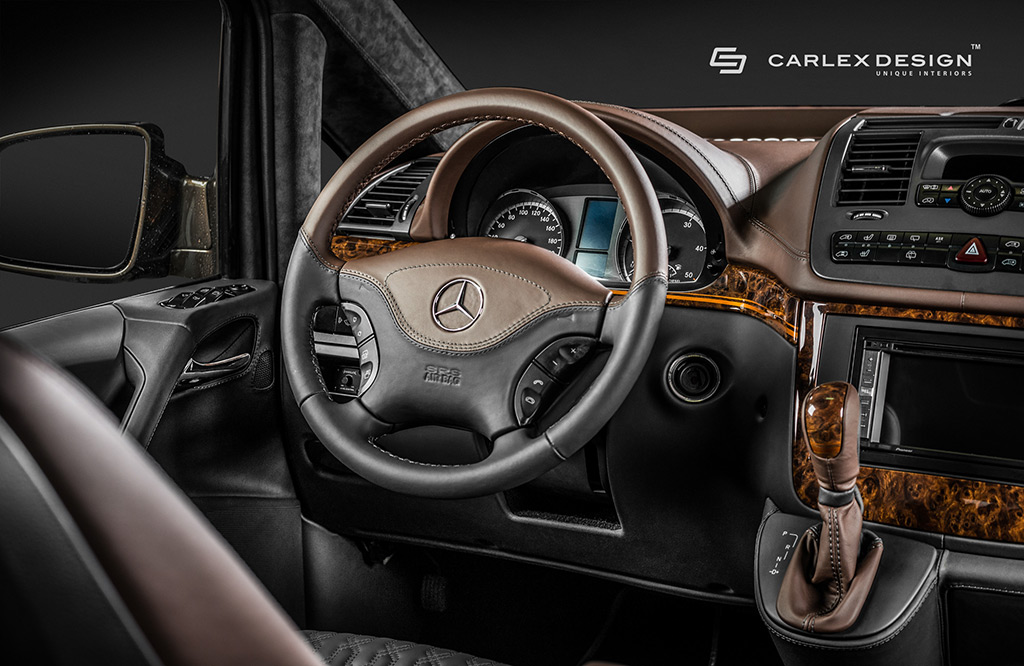 Mercedes-Benz Viano jest idealnym połączeniem prestiżu i wyrafinowania, jaki zwyczajowo oferuje Mercedes z komfortem przestrzennego, praktycznego Vana. Viano skierowany jest do specyficznej grupy odbiorców: biznesmenów, kierowników wyższego szczebla czy też Vip-ów, dlatego perfekcyjne, indywidualne wnętrze dostosowane do potrzeb stanowi punkt, który należy wziąć pod szczególną rozwagę. Luksusowe wykończenie Mercedesa, który właśnie opuścił Carlex Design, to zasługa szytego na miarę wnętrza. Epatuje ono klasyczną elegancją połączoną z designerskim, nowoczesnym wzornictwem, uwidaczniającym się w sposobie szycia oraz pikowania foteli. Umiejętne połączenie najlepszej jakości skóry brązowej, czarnej oraz alkantary sprawia, że w samochodzie można przyjemnie spędzić nawet długie godziny.