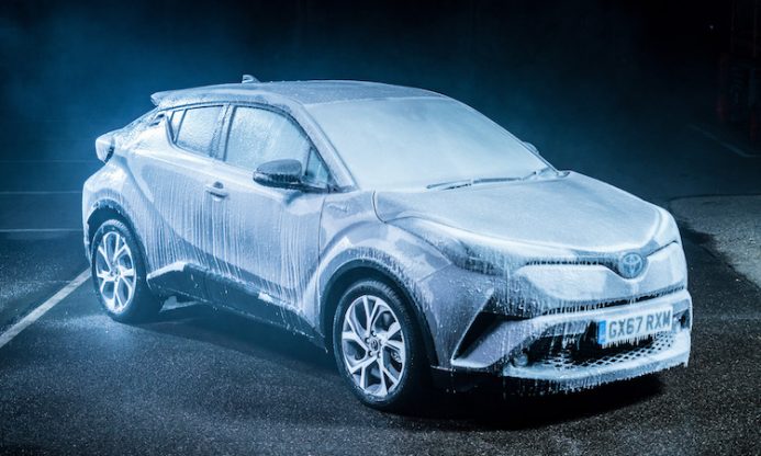 Brytyjska Toyota przez 24 godziny mroziła crossovera Toyota C-HR Hybrid w temperaturze -20 stopni, systematycznie polewając go wodą. W efekcie samochód pokrył się grubą warstwą lodu. Mimo to hybrydowy crossover bez problemu wyjechał z chłodni o własnych siłach. Po wyjechaniu z chłodni lód zaczął topnieć, czego malownicze efekty możemy zobaczyć na krótkim filmie Toyoty UK.