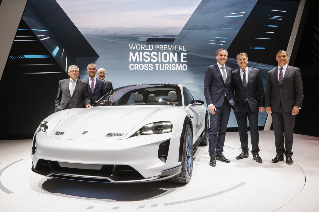 Do atutów tego czterodrzwiowego, czteromiejscowego pojazdu należą emocjonujący wygląd z charakterystycznymi elementami off-roadowymi, a także innowacyjna koncepcja wyświetlania i obsługi z ekranem dotykowym oraz śledzeniem ruchu gałek ocznych. Mierzący 4,95 m długości prototyp ma napęd na obie osie i 800-woltową instalację, przystosowaną do korzystania z sieci szybkiego ładowania. Może być również ładowany indukcyjnie, za pośrednictwem stacji dokującej lub domowego systemu zarządzania energią Porsche. Gotowy do wyjechania na drogi, Mission E Cross Turismo bazuje na studium Mission E, zaprezentowanym przez Porsche podczas międzynarodowego salonu samochodowego (IAA) w 2015 r., i korzysta z elementów zbliżonych do seryjnych.