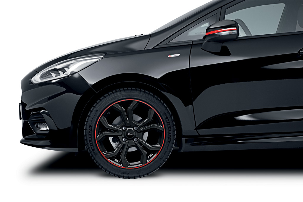 Nowa Fiesta ST-Line Red Edition otrzymała wykończenie zewnętrzne Race Red z matowymi czarnymi pasami obramowanymi czarnymi krawędziami o wysokim połysku, biegnącymi od dachu, przez maskę silnika, aż do dolnej listwy przedniego spoilera. Fiesta ST-Line Black Edition otrzymała zewnętrzne wykończenie w kolorze Shadow Black, a matowe czarne pasy są podkreślone czerwonymi krawędziami o wysokim połysku.