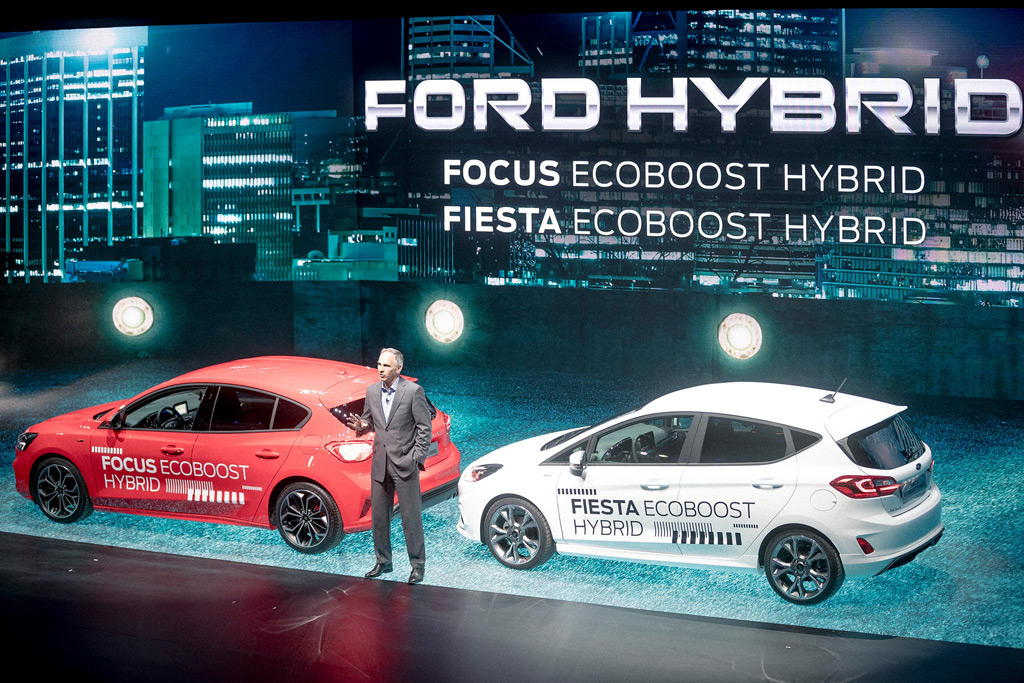 Ford zaprezentował modele Fiesta EcoBoost Hybrid oraz Focus EcoBoost Hybrid, wyposażone w tzw. „miękki” napęd hybrydowy (mild-hybrid), umożliwiający zmniejszenie emisji CO2, uzyskanie znacznie niższego zużycia paliwa, a także lepsze przyspieszenie i ogólnie wyższy komfort prowadzenia.