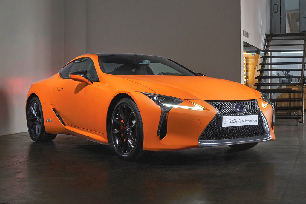 Prototyp został pokryty nowym lakierem Space Orange, dla którego inspiracją były pomarańczowe tony, pojawiające się podczas zachodu słońca. Ten spektakularny kolor, podkreślony matowym wykończeniem, sprawia, że sportowy LC 500h nabiera jeszcze więcej charakteru.