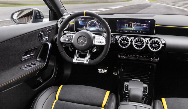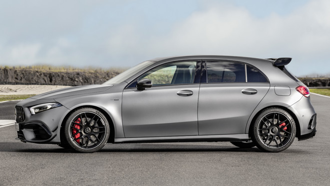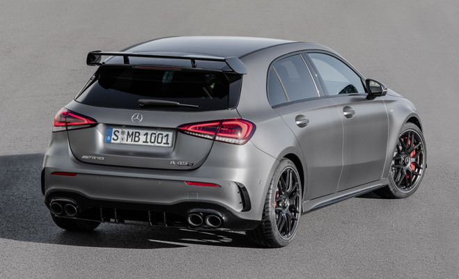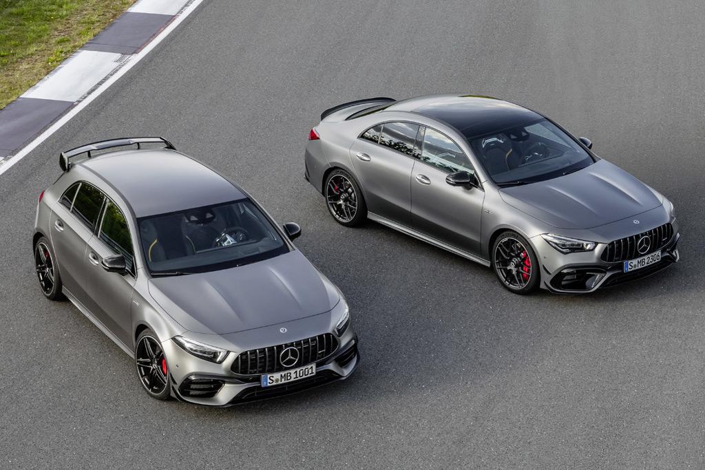 Czterocylindrowiec służący do napędu serii 45 zapewnia wyjątkowe osiągi w dwóch klasach mocy: 285 kW (387 KM) w wersji podstawowej oraz 310 kW (421 KM) jako wariant S. Podobna logika pozycjonowania okazała się już skuteczna w modelach AMG Performance z silnikiem V8. Nowe kompaktowe samochody sportowe przyspieszają od 0 do 100 km/h w rekordowym czasie: A 45 S 4MATIC+ potrzebuje na to jedynie 3,9 s, a CLA 45 S 4MATIC+ sprint do prędkości 100 km/h zajmuje 4,0 s. Podstawowe odmiany A 45 4MATIC+i CLA 45 4MATIC+ osiągają „setkę”, odpowiednio, w 4,0 i 4,1 s.Prędkość maksymalna podstawowych wariantów jest elektronicznie ograniczona do 250 km/h, podczas gdy warianty S są w stanie fabrycznie rozpędzić się do 270 km/h. Z opcjonalnym Pakietem Kierowcy AMG także maksymalna prędkość podstawowych odmian może zostać zwiększona do 270 km/h.