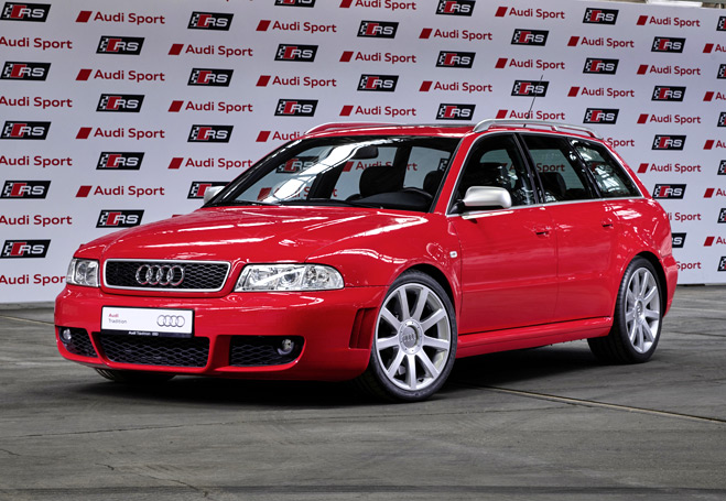 Pierwszy rozdział w historii RS powstał w roku 1994. Wtedy właśnie na rynku pojawiło się wyposażone w pięciocylindrowy, czterozaworowy silnik o mocy 232 kW (315 KM) Audi RS 2 Avant. To właśnie ten samochód pomógł czterem pierścieniom stworzyć nowy segment pojazdów: dynamicznych, wydajnych kombi. Moc auta przenoszona była na jezdnię za pomocą sprawdzonego w wyścigach i w rajdach napędu quattro z samoblokującym się, centralnym mechanizmem różnicowym.