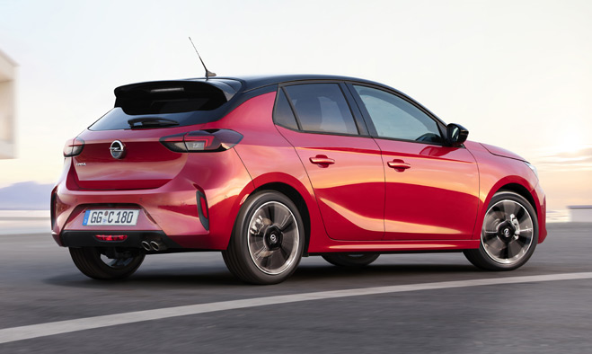 Nowy Opel Corsa mierzący 4,06 metra długości jest samochodem jeszcze nowocześniejszym oraz bardziej dynamicznym i wydajnym. Niezwykle oszczędne silniki benzynowe i wysokoprężne rozwijają moc od 55 kW (75 KM) do 96 kW (130 KM) (zużycie paliwa wg NEDC[4]: 5,4–3,7 l/100 km w cyklu miejskim; 4,1–2,9 l/100 km poza miastem; 4,6–3,2 l/100 km przy emisji CO2 105–85 g/km w cyklu mieszanym; wg WLTP w cyklu mieszanym: 6,4–4,0 l/100 km; CO2: 144–104 g/km). Szósta generacja bestsellera jest jednocześnie pierwszą dostępną również jako w pełni elektryczna Corsa‑e z silnikiem o mocy 100 kW (136 KM) i akumulatorem trakcyjnym o pojemności 50 kWh, zapewniającym zasięg do 330 kilometrów (WLTP[1]). Wszystkie opcje napędu cechują się umiarkowanym zużyciem paliwa lub energii oraz wzorcowo niskimi wartościami emisji, która w przypadku Corsy‑e jest zerowa.