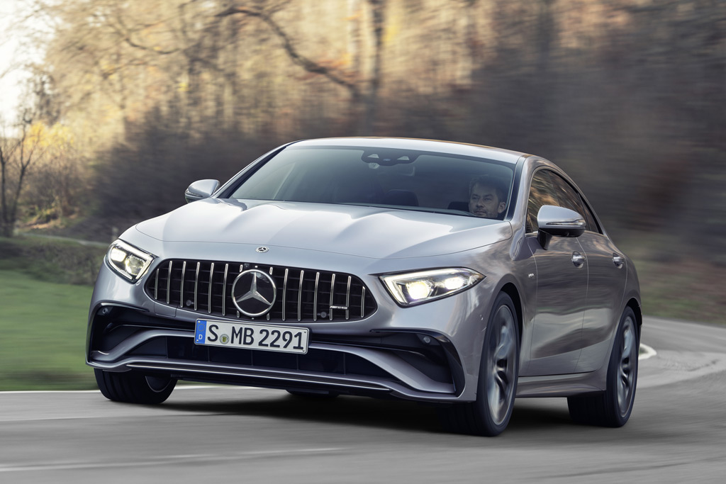 Mercedes-AMG odświeżył sportowy topowy wariant CLS-a, wzbogacając go liczne wizualne akcenty i atrakcyjne pakiety wyposażenia. Zmiany w wersji 53 4MATIC+ obejmują przeprojektowany przedni pas ze sportowym zderzakiem AMG z czarnymi prowadnicami powietrza i widocznymi kurtynami powietrznymi, a także charakterystyczną dla AMG osłonę chłodnicy z pionowymi poprzeczkami. Obramowanie przedniej szyby ma wykończenie z polerowanego aluminium lub – w połączeniu z pakietem Night – w kolorze czarnym, błyszczące. Lusterka boczne są seryjnie lakierowane na kolor nadwozia, ale i tu są wyjątki. Auta z pakietem AMG Night mają lusterka w kolorze czarnym (wysoki połysk), a z pakietem AMG Exterior II Carbon – z wykończeniem obudowyz włókna węglowego. Także Mercedes-AMG wprowadził najnowszą generację kierownicy, doposażoną w znane z innych modeli AMG przyciski z wyświetlaczem.