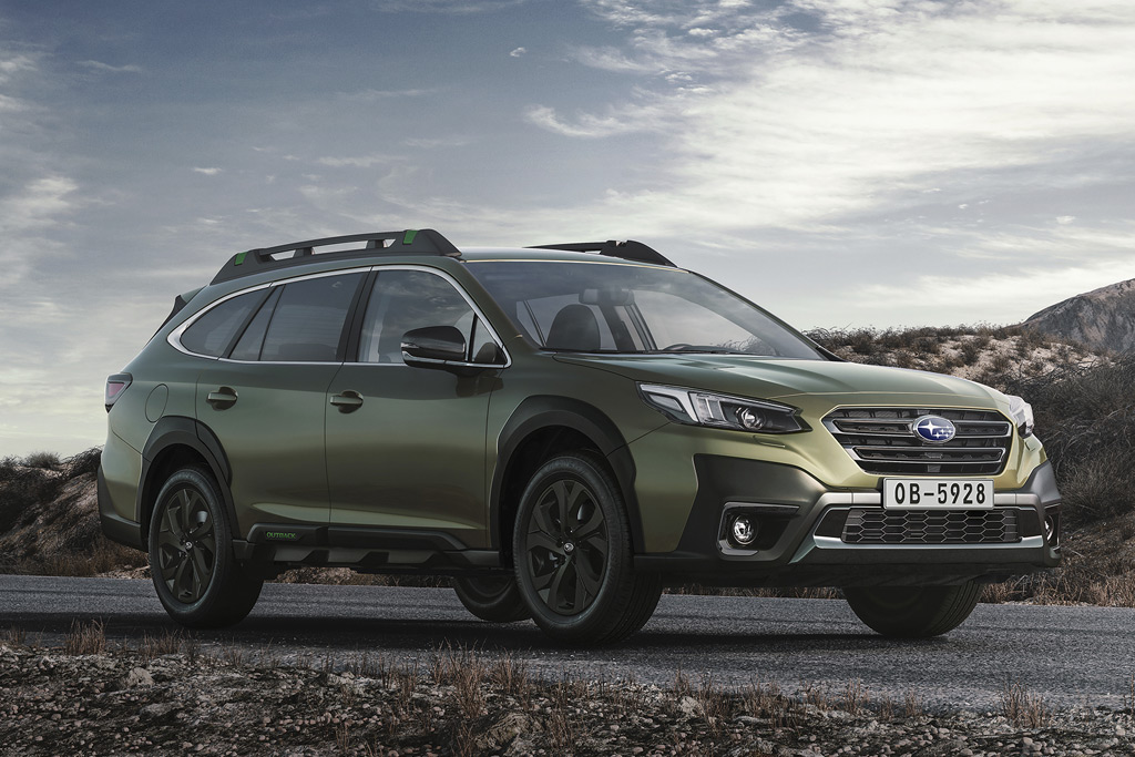 Subaru Outback MY2021 występuje w czterech wersjach. Linia nowego Outbacka, zaprojektowana zgodnie z filozofią „Dynamic x Solid”, akcentuje jego wszechstronność, wytrzymałość i potencjał, a wysokiej klasy elementy nadwozia dodają mu drapieżności i dynamiki. Całkowicie przeprojektowana przednia atrapa z trójwymiarowym przednim grillem i nowymi reflektorami LED optycznie poszerza sylwetkę, a dodatkowo podkreśla atletyczną budowę samochodu. Dopełnieniem są masywne nakładki progów oraz duże, 18-calowe felgi aluminiowe.