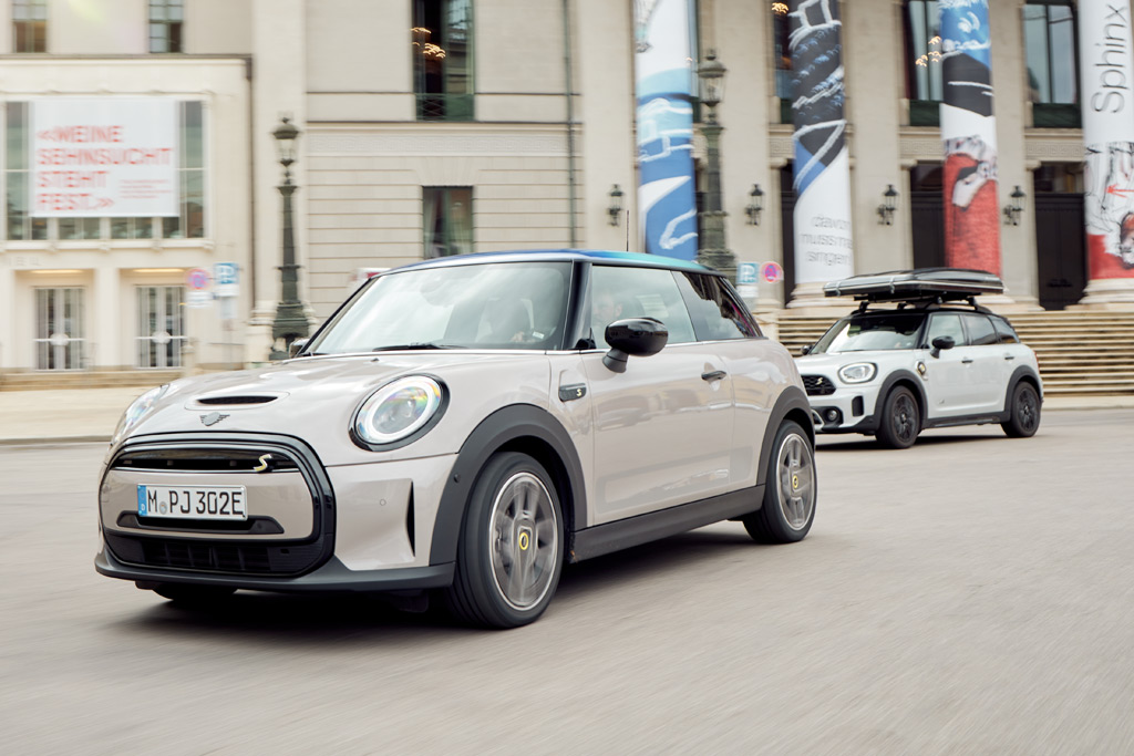 Będzie tam można zobaczyć napędzane w pełni elektrycznie MINI Cooper SE oraz model hybrydowy plug-in MINI Cooper SE Countryman ALL4 (zużycie paliwa w cyklu mieszanym: 2,1‑1,7 1/100 km; zużycie energii w cyklu mieszanym: 15,5–14,8 kWh/100 km, emisja CO2 w cyklu mieszanym: 47–39 g/km). Popularność tych dwóch modeli sprawiła, że w pierwszej połowie 2021 roku ponad 15% na całym świecie, a w Niemczech aż 30% wszystkich sprzedanych pojazdów marki MINI wyposażone było w napęd elektryczny lub hybrydowy. MINI Cooper SE Countryman ALL4 prezentowane będzie na szczycie między innymi z namiotem dachowym włoskiego producenta Autohome dopasowanym do stylistyki MINI, co ma być oznaką wszechstronności tego modelu i inspiracją do wycieczek na łono natury.