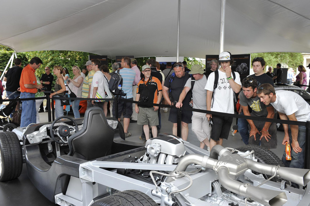 Oprócz pomarańczowego 12C VP (validation prototype) wyposażonego w imponujące felgi z lekkich stopów, 176 000 odwiedzających Goodwood Festival of Speed na stoisku McLarena podziwiać mogło tzw. “rolling chassis” modelu 12C, czyli pełne podwozie, z hydraulicznym zawieszeniem, ramą Monocell z włókna węglowego, kompaktowym, 3,8-litrowym silnikiem twin-turbo i wyjątkową przekładnią.