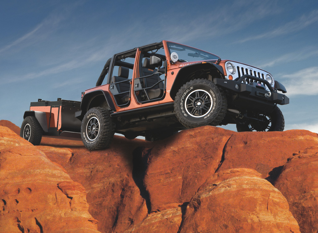 Legendarny już Jeep Wrangler udoskonalony licznymi częściami i akcesoriami marki Mopar to ekstremalna, off-roadowa maszyna. Jeep Wrangler Sahara otrzymał od Moparu potężne, 35-calowe opony i mocne obręcze AEV. Stalowe zderzaki przednie i tylne zapobiegną uszkodzeniom w terenie. Zderzak przedni ma zintegrowane światła przeciwmgielne poprawiające widoczność w złych warunkach pogodowych. Zaprojektowany przez AEV zderzak tylny został wyposażony w uchwyt na oponę. Maska silnika Mopar/AEV zabezpiecza jednostkę napędową przed pyłem i kamieniami i odpryskami żwiru. Pojazd został także zaopatrzony w wyciągarkę Warn.