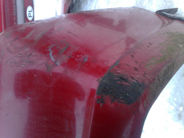 zderzak tylny, bez pęknięć, ale posiada solidne przytarcie w prawym rogu